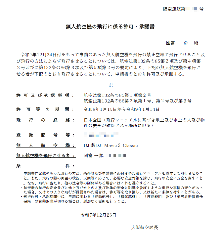 (2025年)無人航空機の飛行に係る許可・承認書を更新